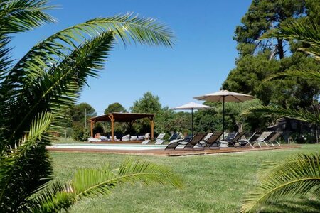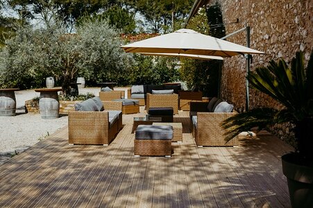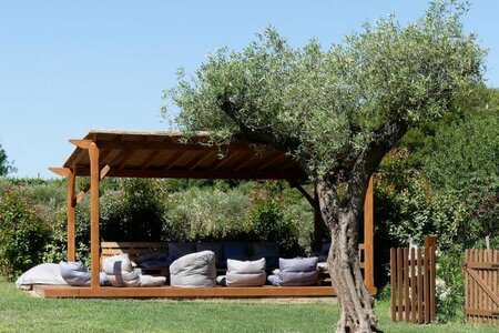 Vous pourrez passer un moment de détente en toute quiétude, à l’ombre des pins parasols centenaires, un parc de 4000 m² vous attend, une cour intérieure de 800 m², entourée de ses oliviers centenaires, vous permettra de découvrir ce havre de paix, ancien domaine viticole depuis plus de 100 ans, désormais transformé en lieu de réception (mariages, séminaires) avec une capacité d'hébergement de 90 couchages (chambres, gîtes, dortoir, village de tipis).