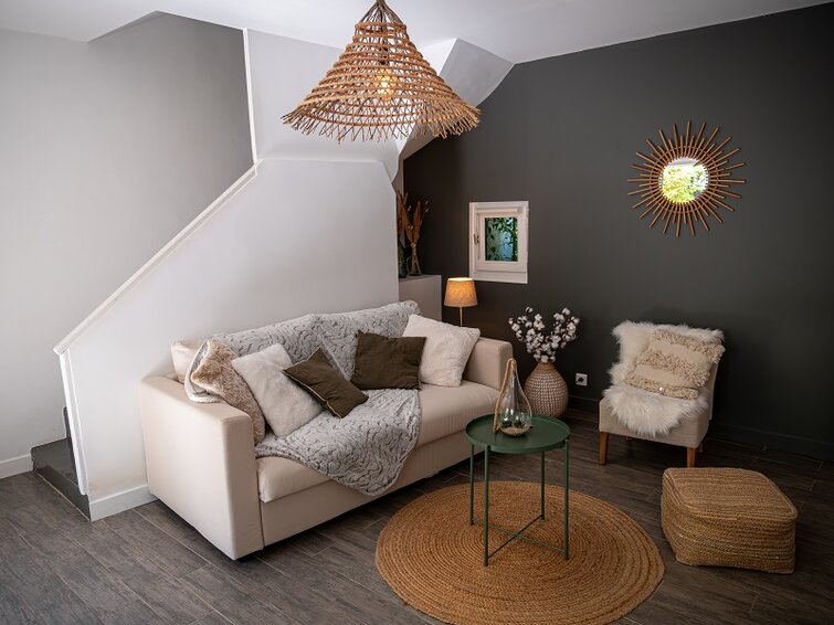 Ambiance cosy propice à la détente ce gîte donne dans la grande cour intérieure au milieu des oliviers.