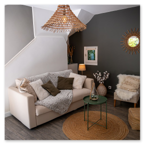 Une pièce à vivre avec un canapé convertible (véritable couchage confortable en 140).